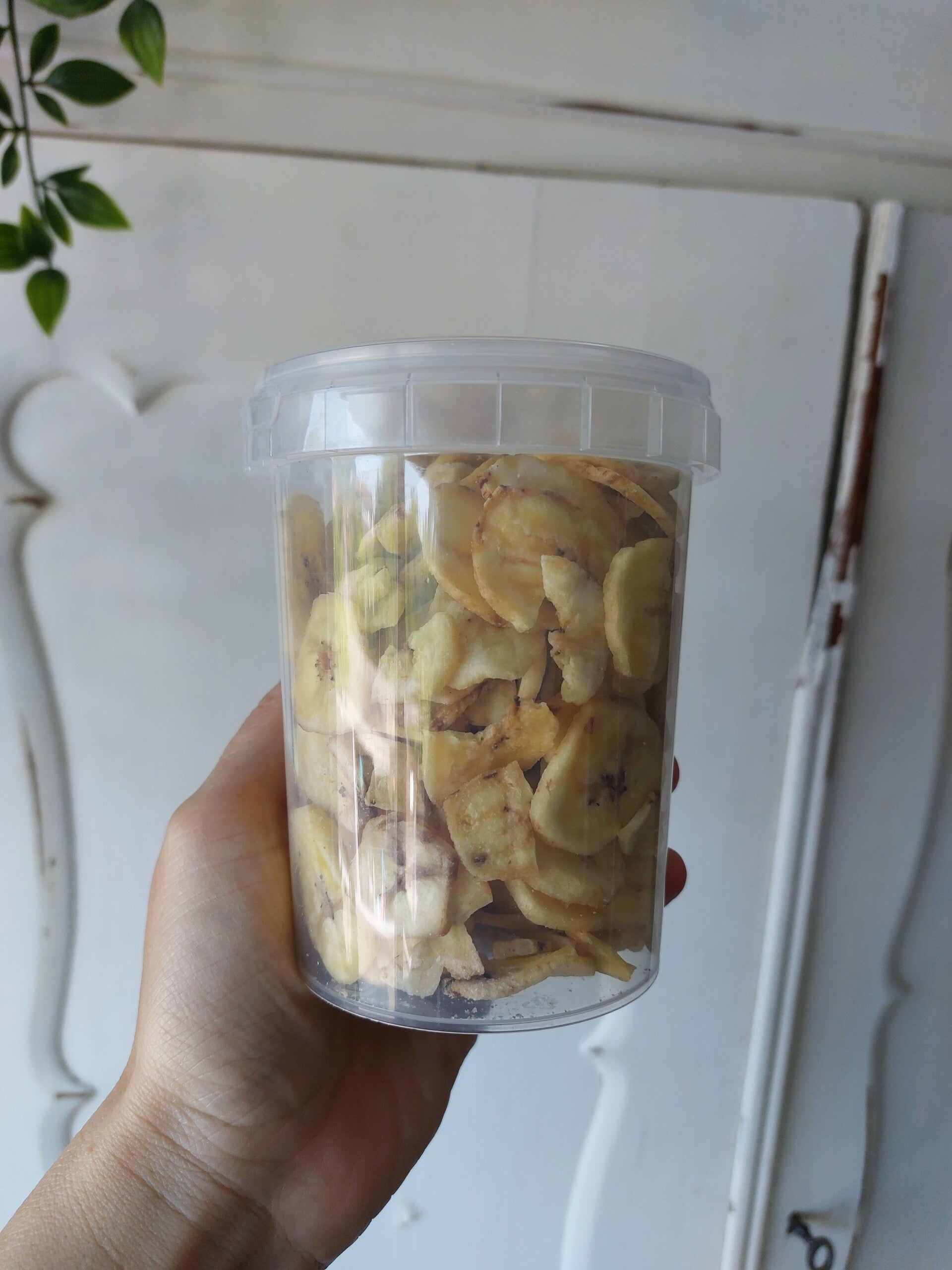 Banaan chips, 100% natuurlijk 100% banaan. Gemaakt zonder kunstmatige toevoegingen. Puur fruit dus, geheel natuurlijk.