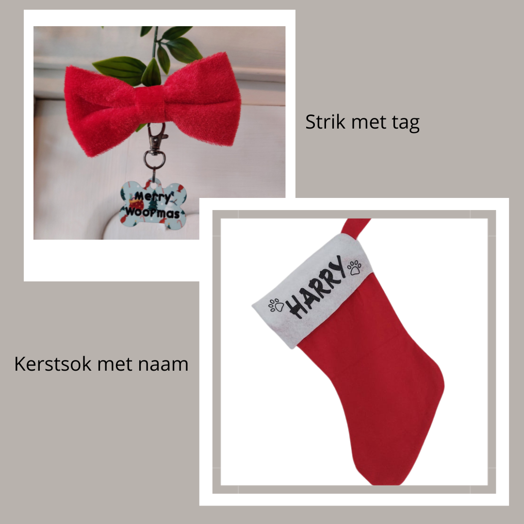 - Een strik met tag voor aan de halsband. De kerststrik is er in 3 uitvoeringen en worden willekeurig uitgeleverd