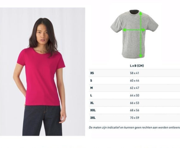 Verkrijgbaar in 5 kleuren en keuze uit 2 kleuren opdruk. Leverbaar in zowel unisex als in dames model. Raadpleeg altijd de juiste maattabel voordat je besteld. De dames shirts vallen aan de kleine kant. De shirts zijn 100% katoen en zullen nog iets krimpen in de was.