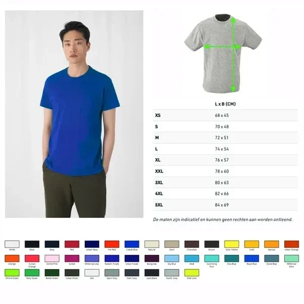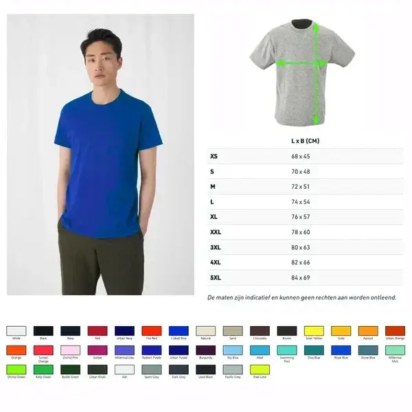 Meet voor je een bestelling plaatst een shirt van jezelf op volgens de afbeelding bij de maattabel. Zie laatste foto. Vergelijk de uitkomst met de maattabel maar houdt rekening met een krimpmarge. Op deze manier weet je zeker dat je shirts gaan passen. Alle shirts worden op bestelling bedrukt en kunnen daarom niet retour.